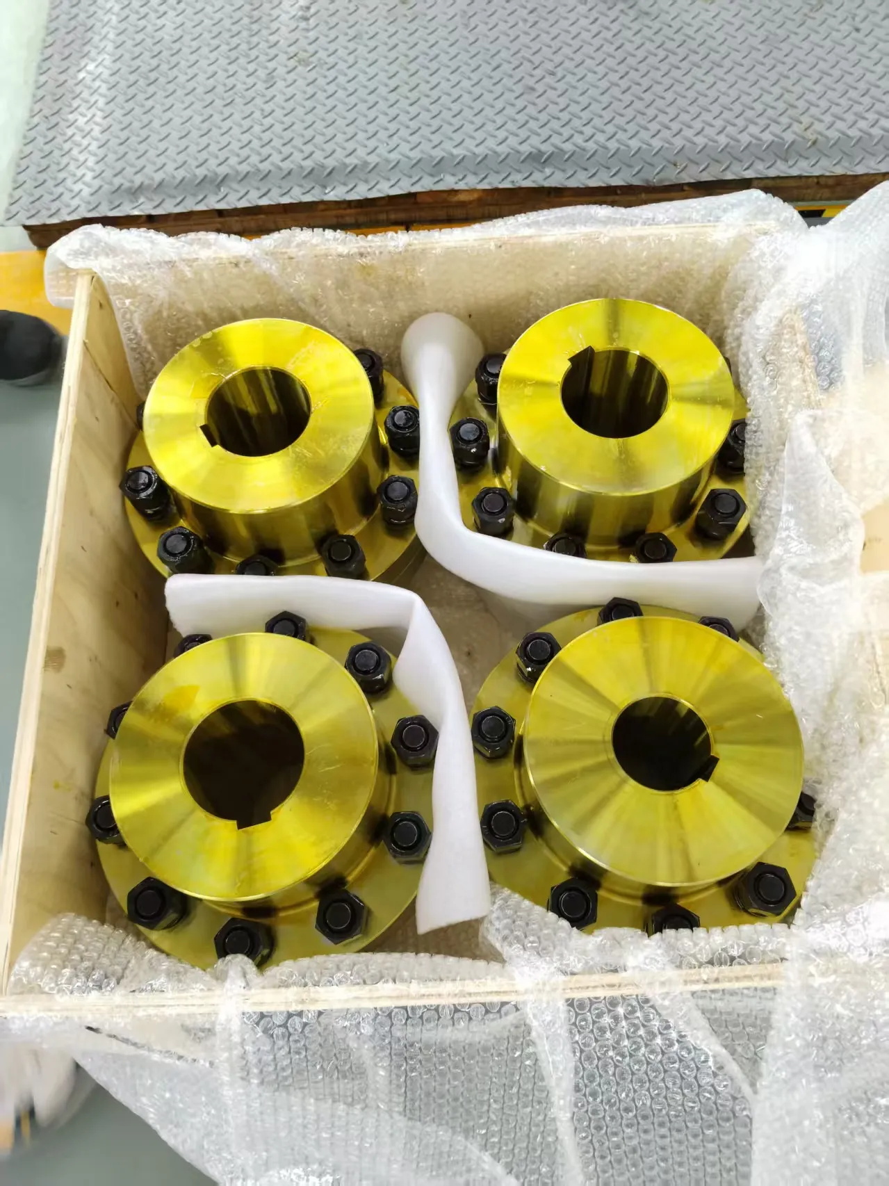Kopling flensa digunakan pada peralatan metalurgi dan peralatan pertambangan. Ini adalah kopling kaku dan tidak memiliki kemampuan untuk mengkompensasi deviasi radial, aksial dan sudut. Selama pemasangan, koaksialitas kedua poros harus sangat baik.