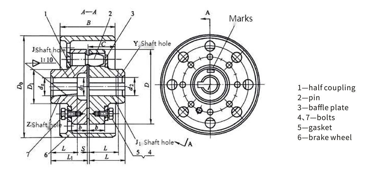 Kopling pin elastis tipe HCL dengan roda rem (Q/YZ31002X-2018)
